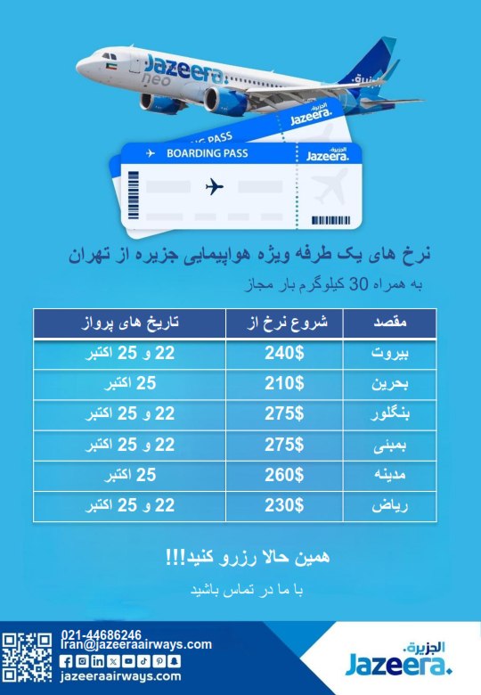 بخشنامه و اطلاعیه هواپیمایی جزیره درباره نرخ های یک طرفه ویژه هواپیمایی جزیره از تهران