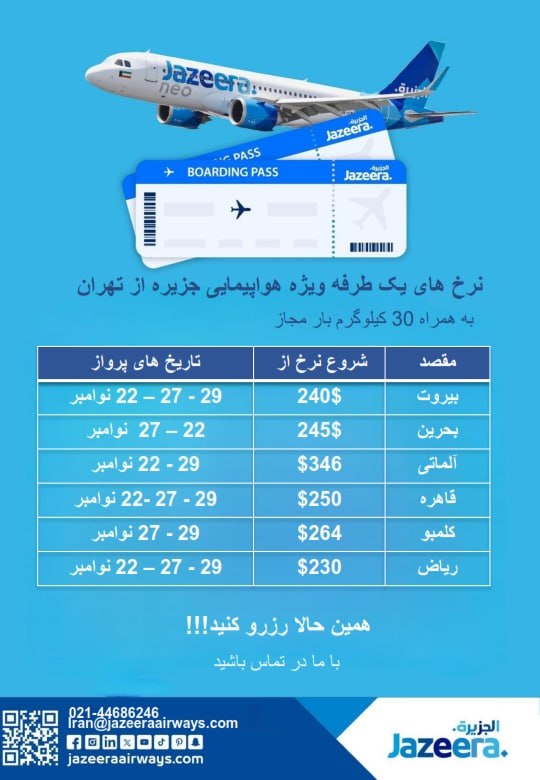 بخشنامه و اطلاعیه هواپیمایی جزیره درباره نرخ های یک طرفه ویژه هواپیمایی جزیره از تهران