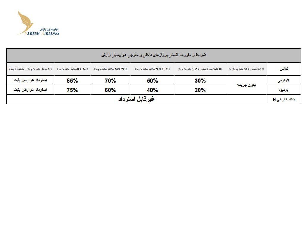 بخشنامه و اطلاعیه هواپیمایی وارش درباره ضوابط و مقررات کنسلی پروازهای داخلی و خارجی VR 15699
